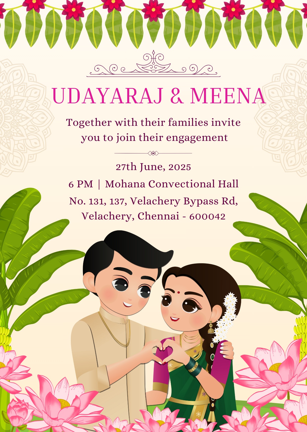 We both come to know each other by matrimony website & planned to meet at Vadapalani Andavar Muragan temple, and from that moment, life’s been a beautiful adventure. From our day 1 to engagement/Marriage story has beecome a favorite memories, it’s been a journey full of laughter, growth, and love. We can't wait to start this next chapter together..